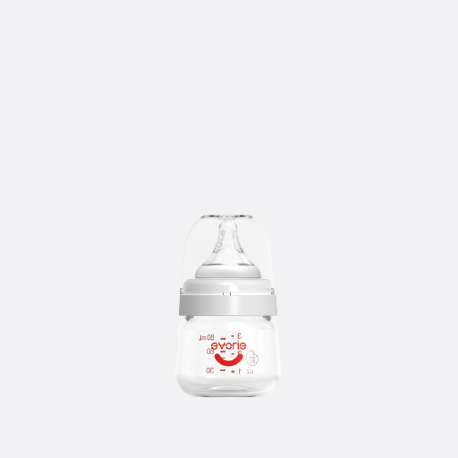 玻璃寬口徑新生兒奶瓶80mL-透明蓋